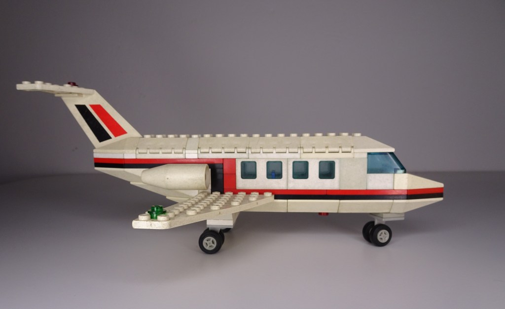 Il mio primo aereo! Spettacolare, con cabina passeggeri e stiva per bagagli con portello dedicato. Il gioco, per i tempi, era veramente grosso e in mano dava una grande soddisfazione, tanti di noi spero abbiano come me, tolto mille volte i carrelli per farlo volare così come un vero aereo. Linea e colori splendidi per l’epoca.