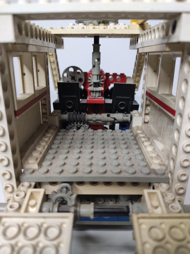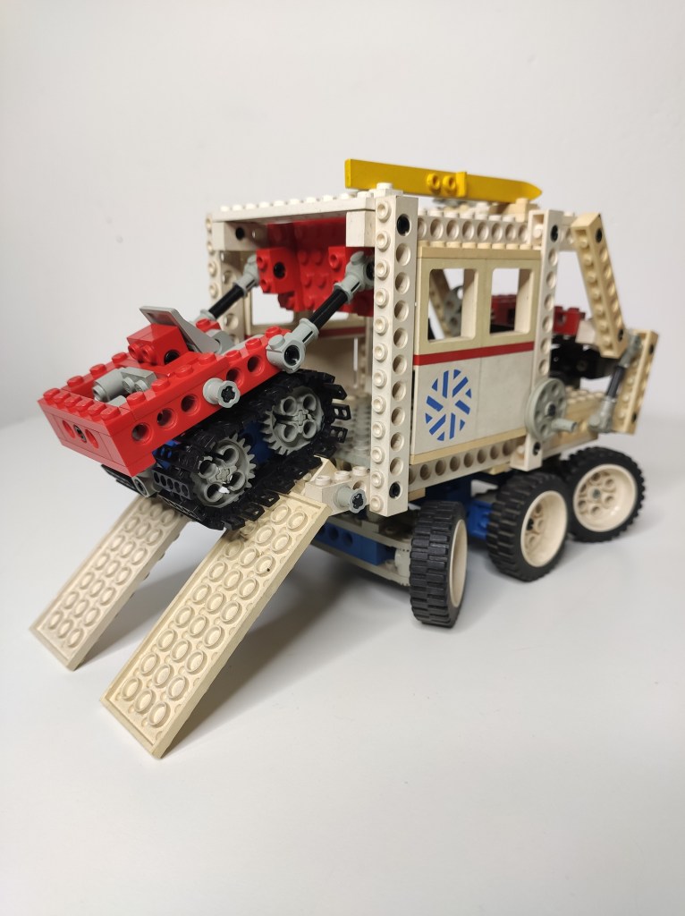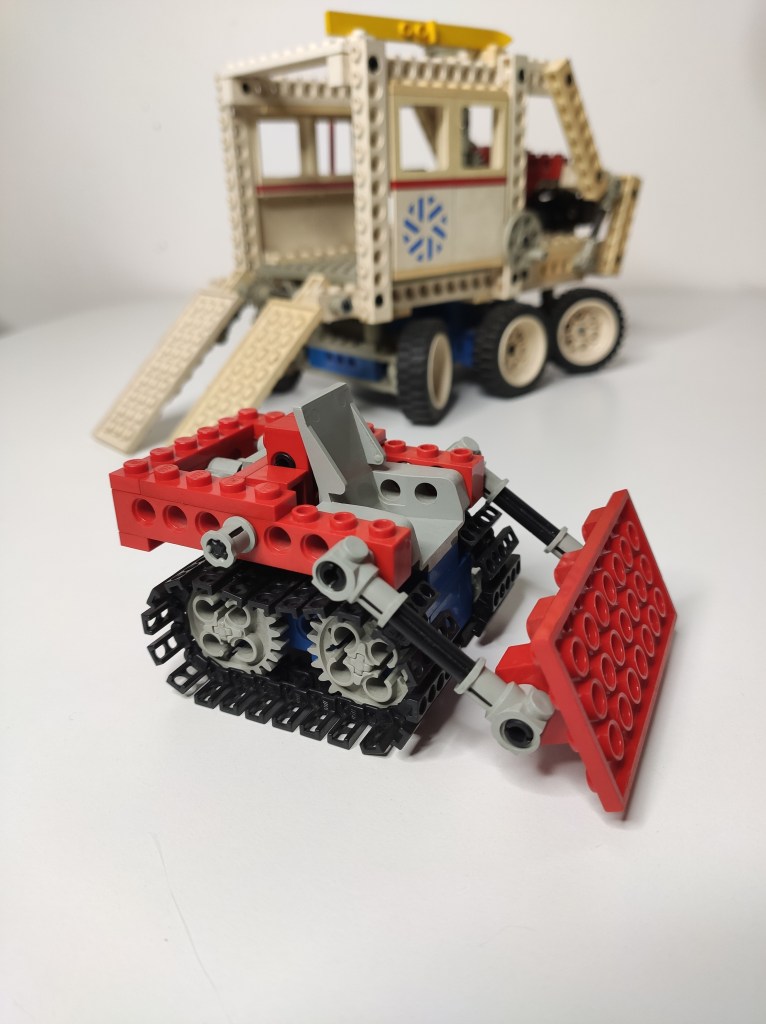 Un veicolo immenso ricevetti quel Natale, una giocabilità infinita, poi quei cingoli ai limiti del realismo. Circuiti ancora funzionanti, è montato da allora, incredibile come alcuni pezzi siano diventati gialli altri rosa e altri son rimasti bianchi. Questi set insieme a quello dell’elicottero avevano le dimensioni perfette per giocare, ma grazie alla struttura Technic erano molto leggeri, e quindi gran portabilità e grandissime possibilità di gioco.